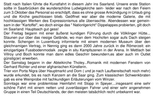 Kunstfahrt ins Saarland vom 9. - 12. Okt. 2025