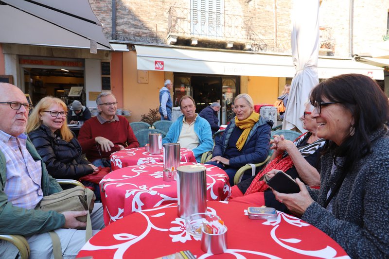Abendessen in der Osteria dei Bottoni und ein gemeinsamer Absacker in der Hotelbar waren dann der schöne Abschluss dieser interessanten Tage in Oberitalien mit einer äußerst netten Gruppe. Auf dem Heimweg gab es noch einen Stopp